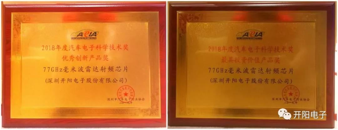 会上,开阳电子自主研发的“77GHz毫米波雷达射频B体育(中国)”一举获得两项中国汽车电子科学技术奖——“优秀创新产品奖”和“最具投资价值产品奖”。